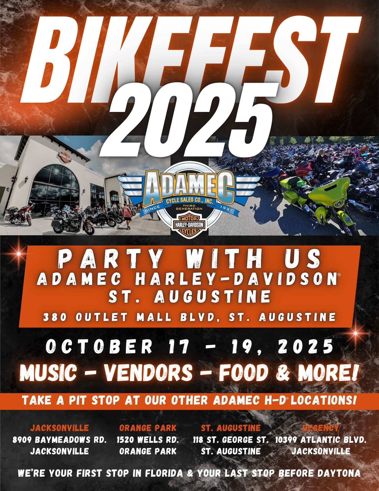 Get ready to rev up your engines and ride into the heart of Florida’s motorcycle culture at Adamec Harley-Davidson® Bike Night and BikeFest 2025, your first stop in Florida and your last stop before Daytona!